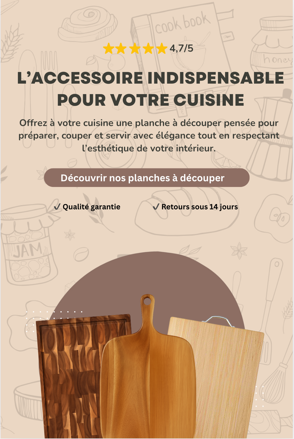 Nous privilégions des matériaux durables et sûrs, sans substances nocives, pour que vous puissiez découper, cuisiner et servir en toute confiance.